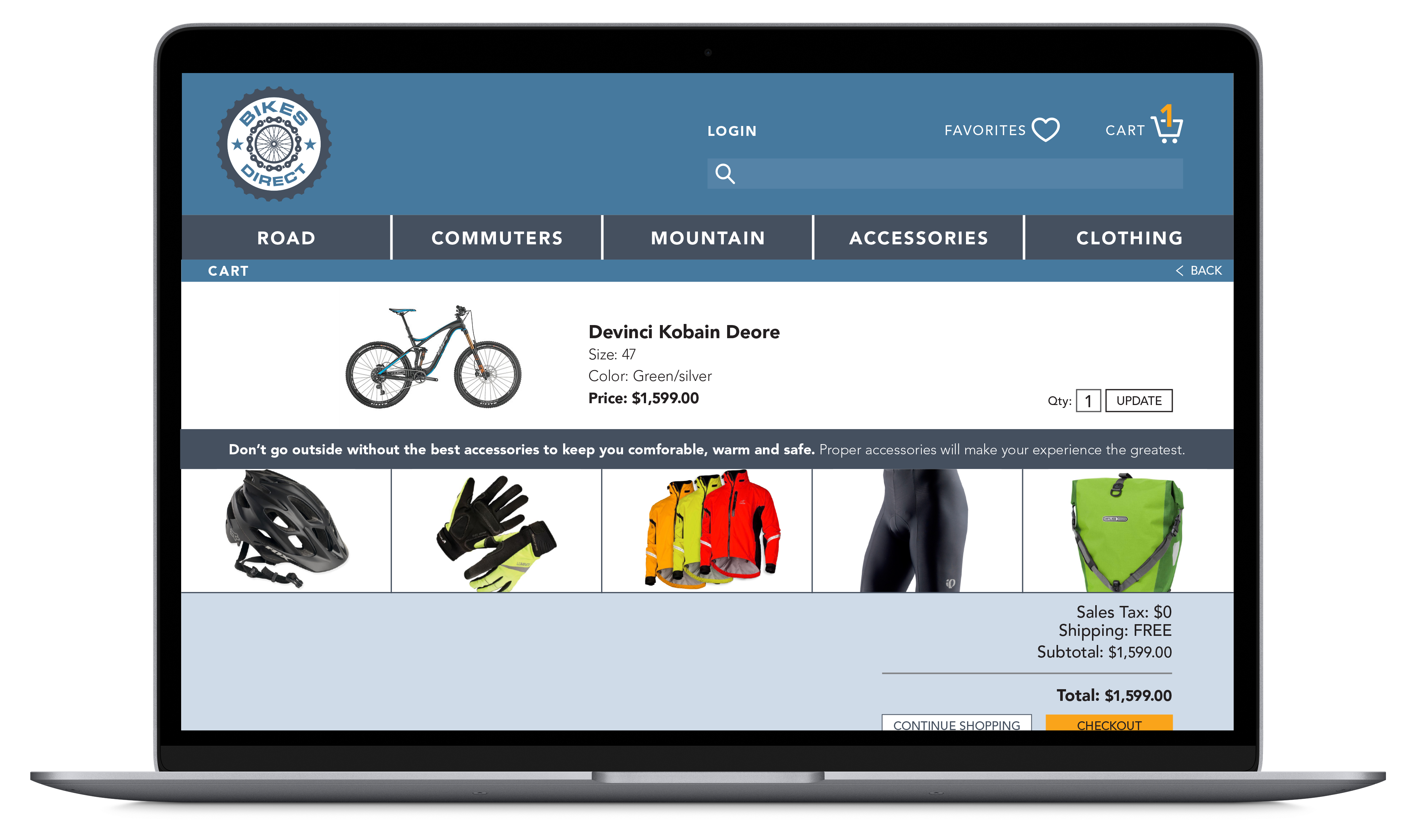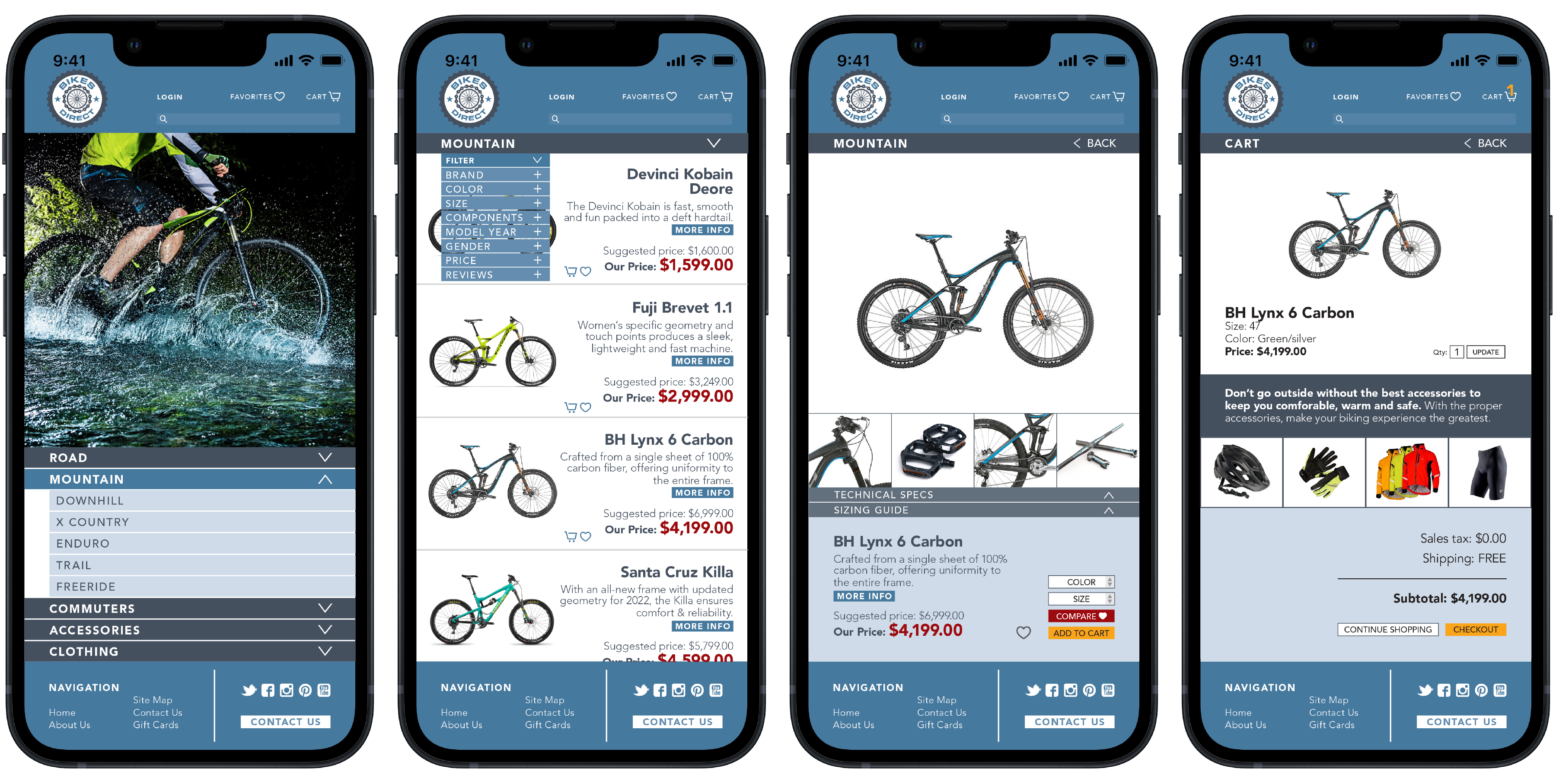 Find your next bike from your couch. This project provided me the opportunity to streamline the process of purchasing bicycle gear with an easy to search website and complimentary mobile app. Ride on biker.